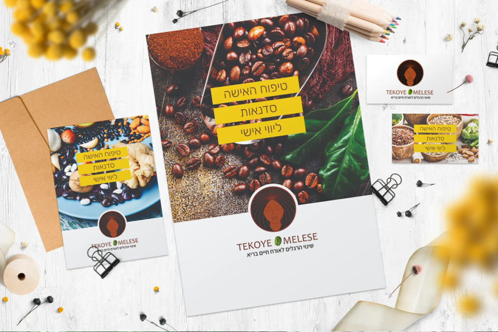מטרת הפרויקט הייתה לייצר תדמית חדשה עבור טקויה מלסה – מאמנת לאורח חיים בריא ושינוי הרגלים. הק העיצובי שבחרנו הוא צבעים נשיים, עדינים וגוונים שמזכירים את אפריקה – קפה והדפסים שונים.
